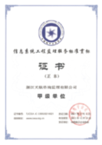 浙江天航咨詢監理有限公司,成立于2001年,總部位于浙江省杭州市,是專業從事信息系統工程規劃咨詢、設計咨詢、工程監理、測試評估、審計與評價、管理咨詢等全過程服務的“國家高新技術”和“省專精特新”企業。