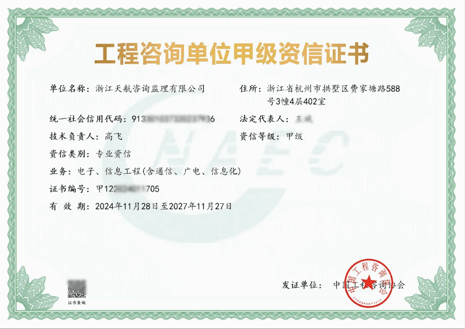 協會工程咨詢乙級證書